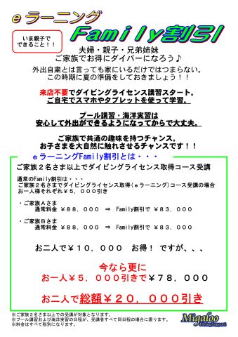 ただいま『eラーニングキャンペーン』『eラーニングFamilyキャンペーン』を実施中です。